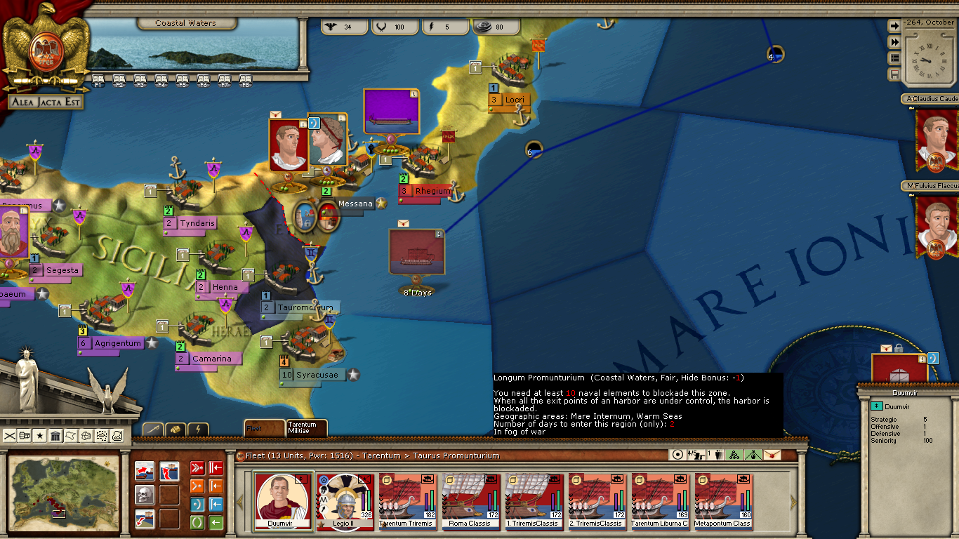 ) spending the 5 EP to allow a night crossing in case the Carthaginian fleet tries to block it by normal means. I left him on Defensive.