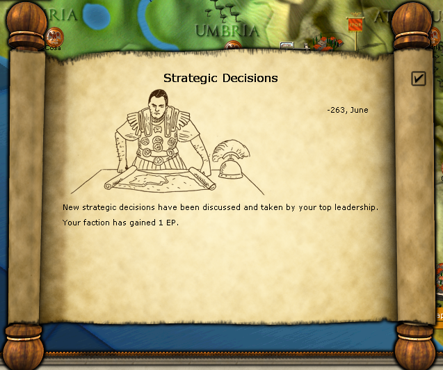 Henna finally surrendered. Gained 1 NM from the surrender. The Massalian fleet got hit by a storm on the way to Ostia. Didnt lose any elements but took a fair amount of hits :( Gained 1 EP from strategic decisions. I will need plenty more as the option to persuade Emporiae to join our cause costs 20 EP. I am able to sell more prisoners again. Another 200 D to spend nearly all on Replacements. Hanno retreated all the way back to Lilybaeum.