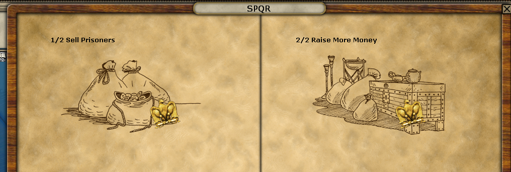 The raise more money option didn't trigger last turn. Mudt have been because i had also selected the sell prisoners one. I will try it again. My replacement situation isnt great. Particularly after the last naval battle.