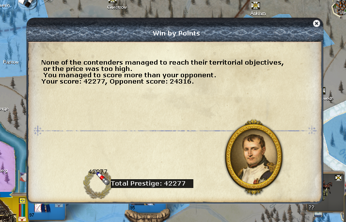 Thanks again for a great game, and hopefully next game, Oldenburg (and its non-dissolution) will not be a problem, and I'll be able to form the Grande Empire (wasn't able to this game).