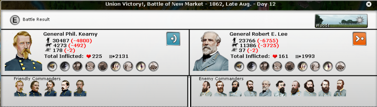 Lee attempted another attack against Kearny. Kearny held and both armies are going to need some time to refit.