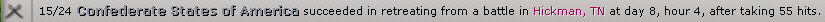 Orphan_kentuckian wrote:Unfortunately our corps under Franklin was in attack mode while moving on Culpepper so it seems it put our whole force in attack stance. I think had that not happened we would have won a tremendous victory here.