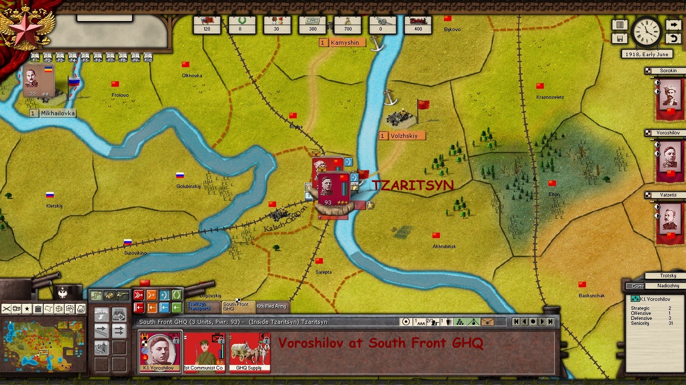 Over 1500 points in combat power is immobilized at TZARTISYN due to Stalin's incompetence! And now the city is threatened with encirclement. Oh, to have an option to put a bullet in that man's twisted brain!
