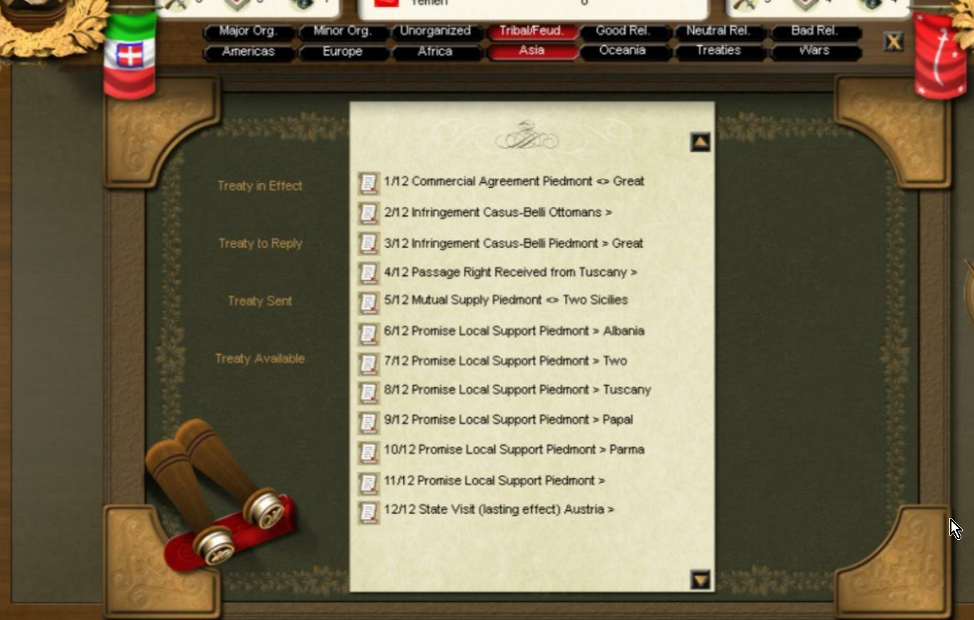 One thing I noticed that seems new (never noticed this before) when selecting countries to buy from within a trade region box, the minor countries are ganged together, i.e. if I select Papal States Fish it will select Two Siciies as well, and not show the cumulative on the Assets Balance Window.