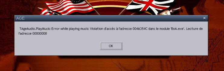 La musique était désactivée quand j'ai lancé le jeu après l'avoir patché. Je l'ai remise en route et fait rapidement un petite partie (Caroline 76). Au moment de la victoire, j'ai eu un message d'erreur - auquel je n'ai pas vraiment fait attention puisque tout fonctionnait très bien.