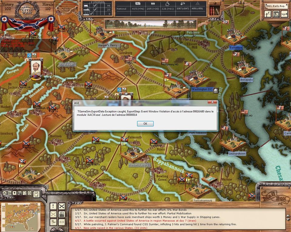 For the record, I advocated this rule for BoA, in order to keep the British Armies in check. Inactive or not, I found British armies could whip American armies, so the only solution seemed like an Activation rule that prevented an attack at all. I am glad Pocus is coding some version of it, but I am unsure if it is necessasary or applicable to AACW.