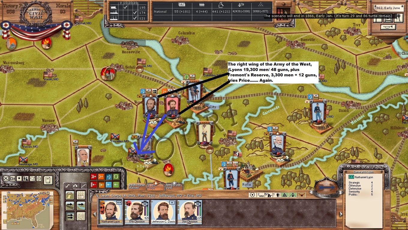 The move in the east mentioned above is under way. And Grant called off his move when a Corps showed up. oh well.