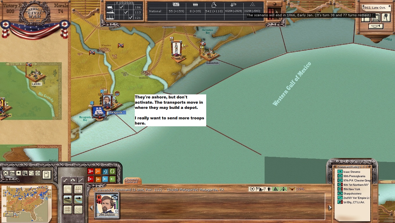 One can only hope that these inane penalties for not attacking, (really, papers scream over no 1862 offensive? Not in any history I ever read. And what, the invasion of Texas and Florida wasn't an offensive??), are removed in the hoped for AACW 2......