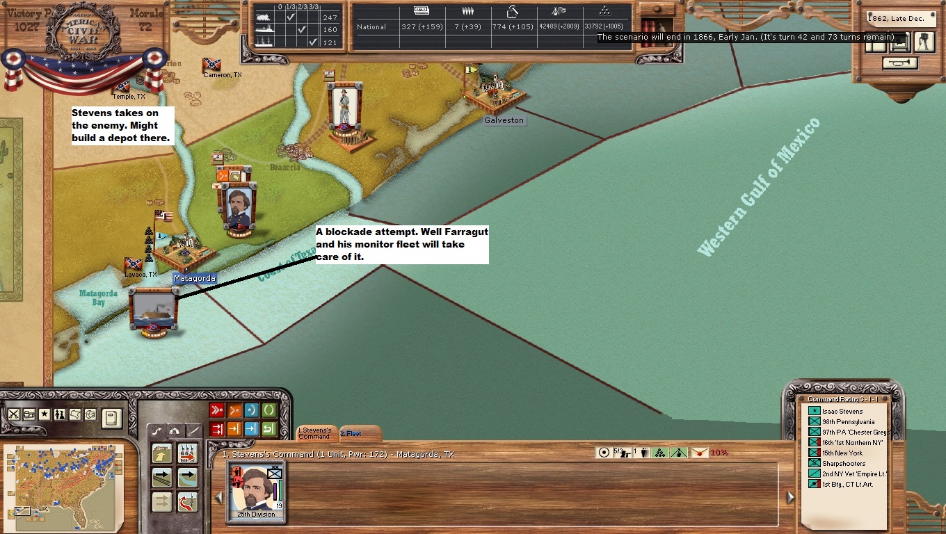 There is a Corp sized formation in the Keys. It could go to Pickens, NO, maybe even Vicksburg. Maybe Texas. Or land at that fort near NO then go overland......