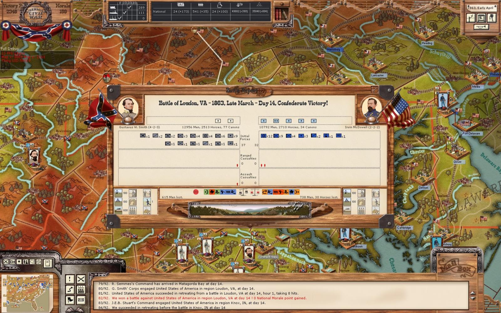 veji1 wrote:wow. I just read the reports at the bottom of the screenshots and it looks like you have made 38 000 prisonners in western Kentucky in this campaign, with 36 000 of those in Paducah. This is a major disaster for your opponent, you just basically did to him the equivalent of capturing Fort Donelson and Vicksburg at the same time !!
