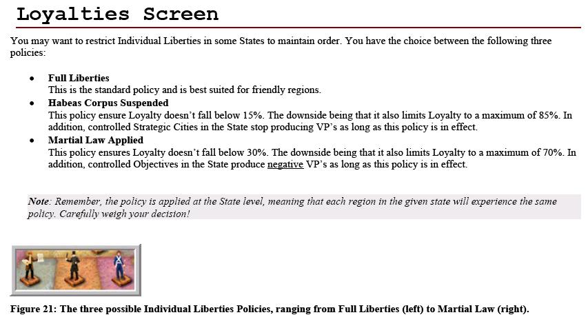 There is more games where the players are using Loyalties options. I´m hosting the Jabberwock(CSA)-Torca(USA) game, and Torca is using Martial Law at Missouri.