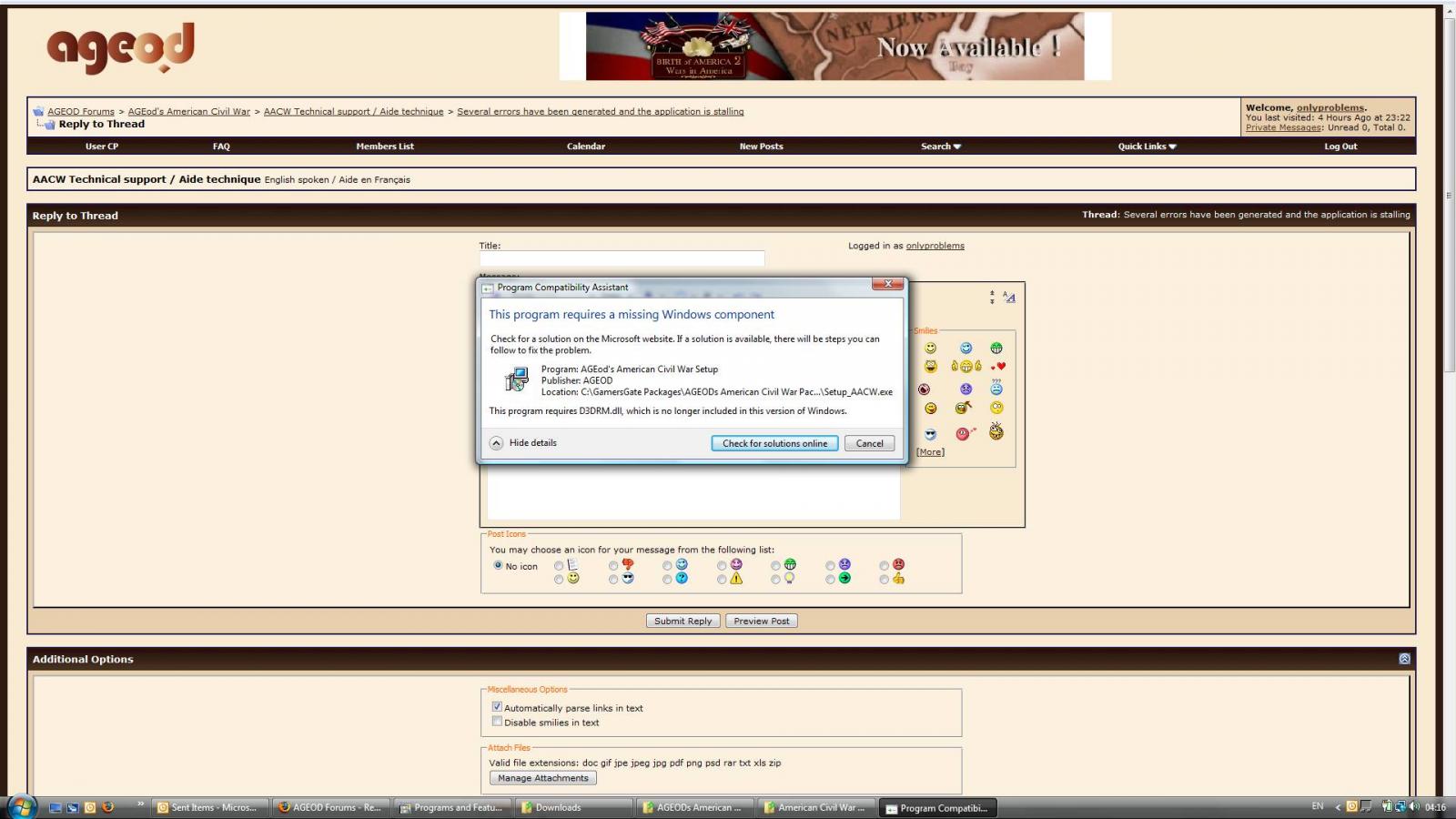 ) on Vista 64 w/o problem, so this is not an easy incompatibility problem to solve. If you bought the game at AGEOD, I would suggest a refund or an exchange for another game (WW1 is not using the same engine).