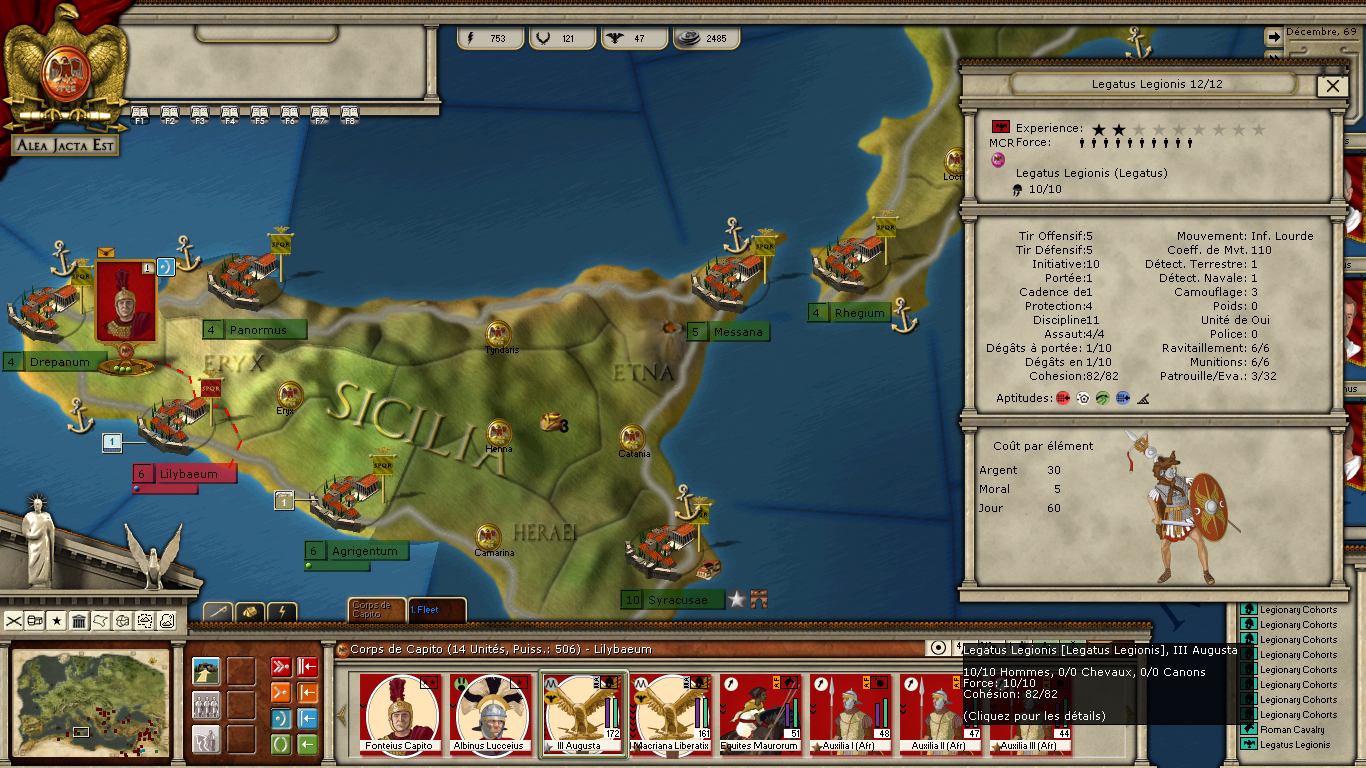 In this scenario Africa can be annexed by Vespasian. Problem is, the annexed legions seem to retain legatus elements of their old faction. So those legions count 4x the usual command cost (12 instead of 3). I'm not sure this is intended...[ATTACH]20065[/ATTACH]