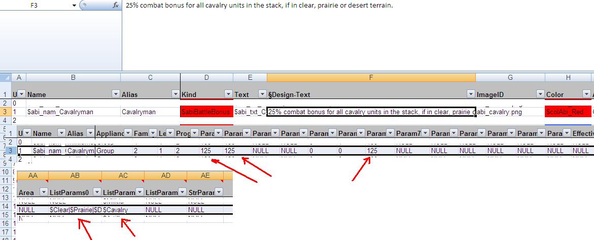 Thank you so far for your reply. Still, as the database cannot be downloaded I need to work with the txt.files and the editor. Painful, but the only solution. And the first lines in the ability-files (e.g. 1cavalryman.abi) are understandable. Problem are such fields like Family or ProgRate. Furthermore, how does the parser pick the right parameters when all the files are compiled? Example: Cavalryman Param0 = 125 - okay, I understand this field is explained down at the bottom with clear, prairie and desert - will probably mean movement bonus