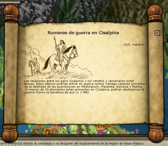 A message has appeared in one of my 2nd punic war games: rumours of war in the Cisalpine. But the text is a bit confusing, so I have two doubts: