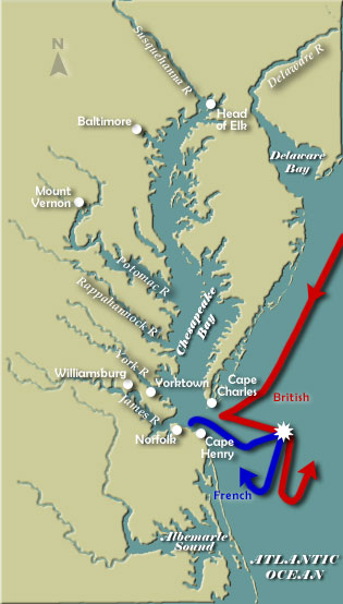 The French blockade off the Virginia Capes sealed Cornwallis' fate at Yorktown.