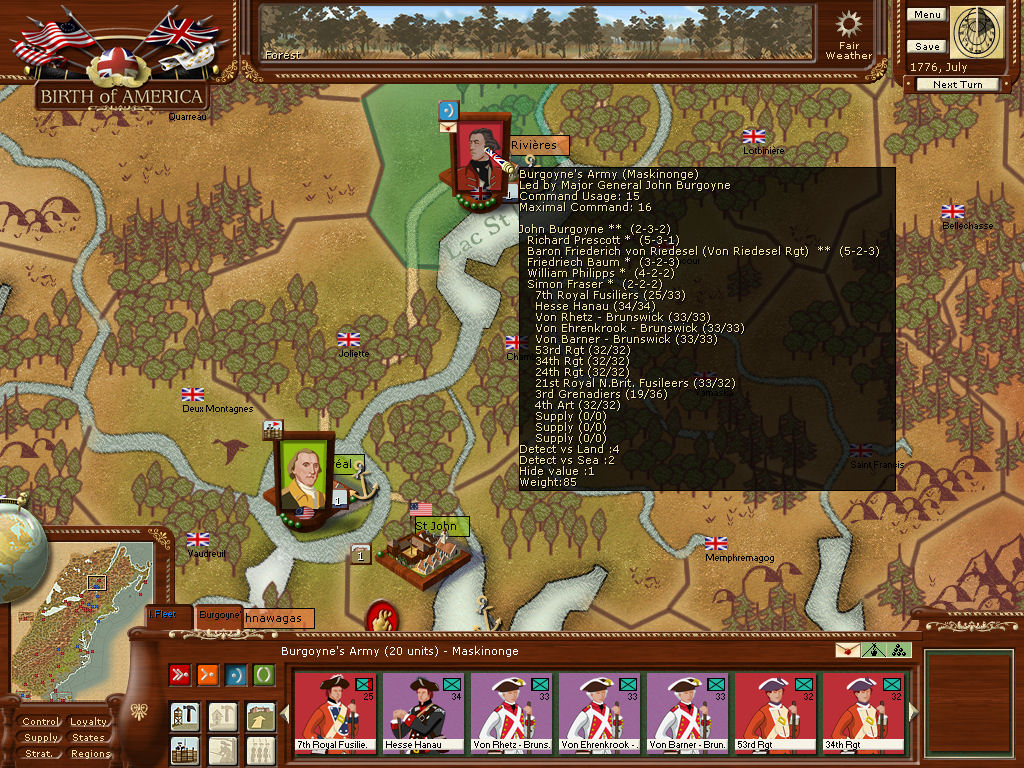 Cornwallis is still besieging Hartford - the defenders' supply level is zero. Lee and about 6 units are trapped in there.