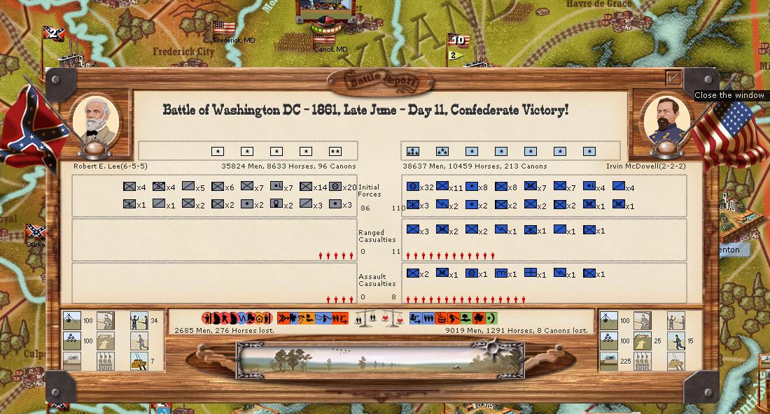 And by your logic (out manned, gunned etc), in real life the CSA should have lost every battle they ever fought. For example, at Chancellorsville, the forces were approx 130k to 60k. And who won? I'm sure Lincoln thought there was something rotten in Denmark too![]()