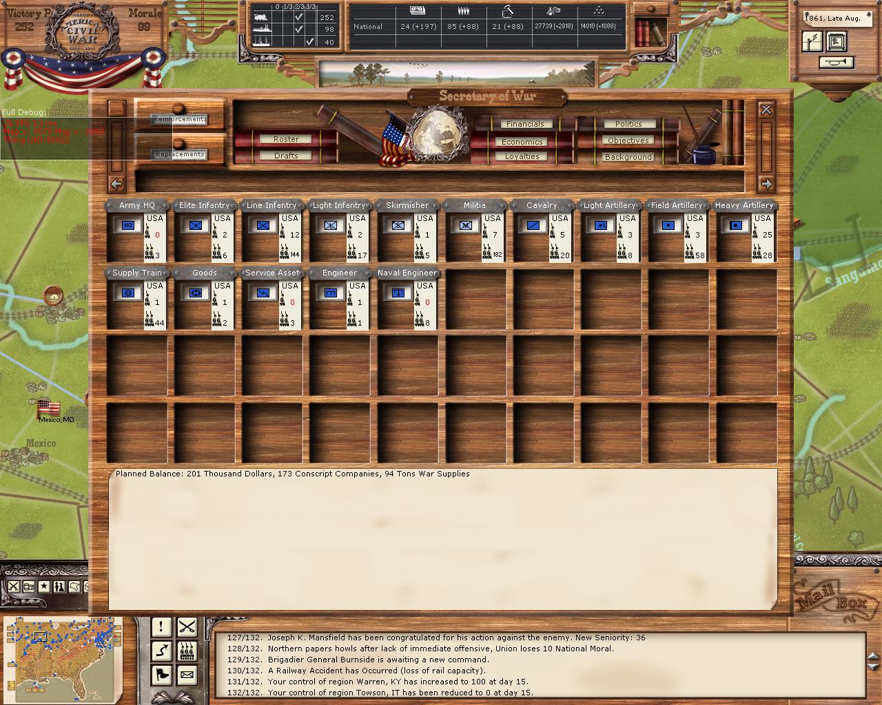 - Is it wad that in this stage of the game we can not raise Tennessee brigades ?? (although they appear by event eg with Polk...)