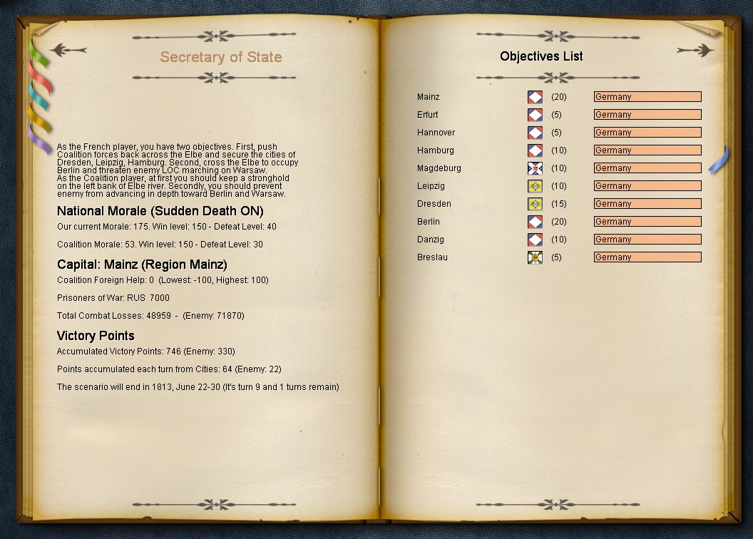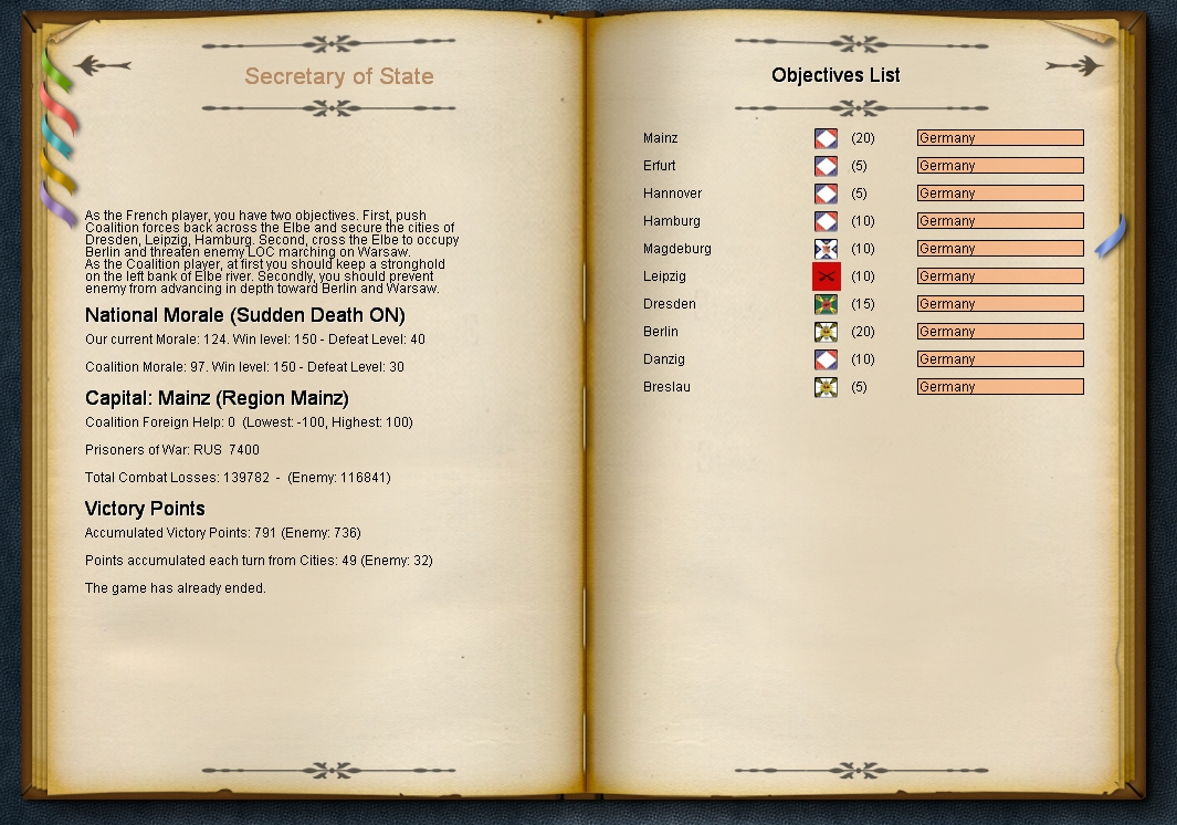 Some screenshoots from the two prelude to Leipzig campaigns played with the french