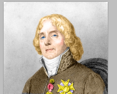 Now load the picture of Talleyrand on Photoshop and let's add the different colors. You will need some trials and errors to get a color you like. The color eplacement tool has the advantage of preserving the shadows, but also the color you add is not exactly the same you see, it is somewhat washed