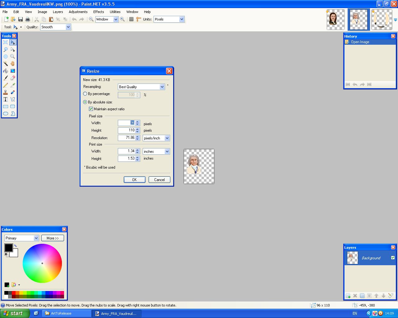 You have to resize to around 44 x 64 pixels that is the size of the portrait without any background. And then add some colored pixels in the bottom margins :)