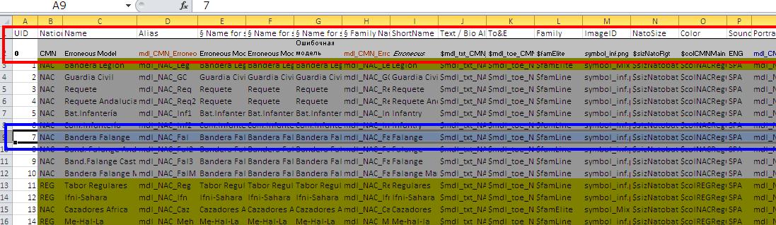 We need an excel file with the appropiate design, so we use an Ageod models file from another game. In España design i begun with RUS file.
