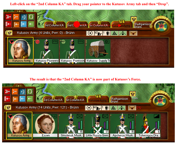For some reason I can't understand how to merge two tabs or the elements in two separate tabs into a single army. I think there is part of the wording of the manual that I dont understand.