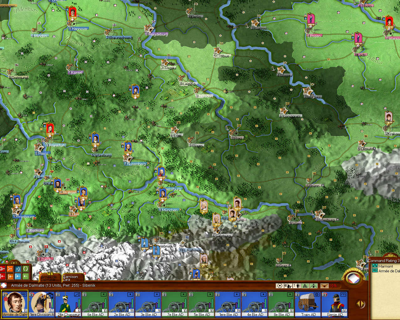 Picture 3 When you select The Army of Dalmatia, start to flash in red Kellerman's reserve corps, Jerome Bonaparte's Corps and Poniatowski's Army of the Duchy of Warsaw.