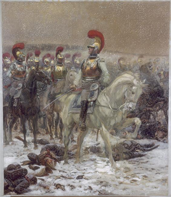 By the way, I forgot to mention that the picture is "Avant la charge, les carabiniers à Winkowo", by Jean-Baptiste-Edouard Detaille (1848-1912), it is in same museum, Musée de l'Armée, Paris
