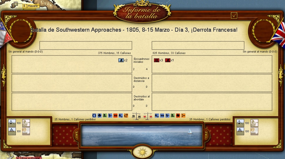 Sí, lástima que no se conozca la composisicón exacta de esa escuadra, no es la primera vez que me topo con que la IA monta una escuadra toda entera de fragatas, corbetas y otras unidades menores. En cualquier caso, hay que aprovechar para salir de La Coruña. Veremos si Villeneuve toma la decisión...