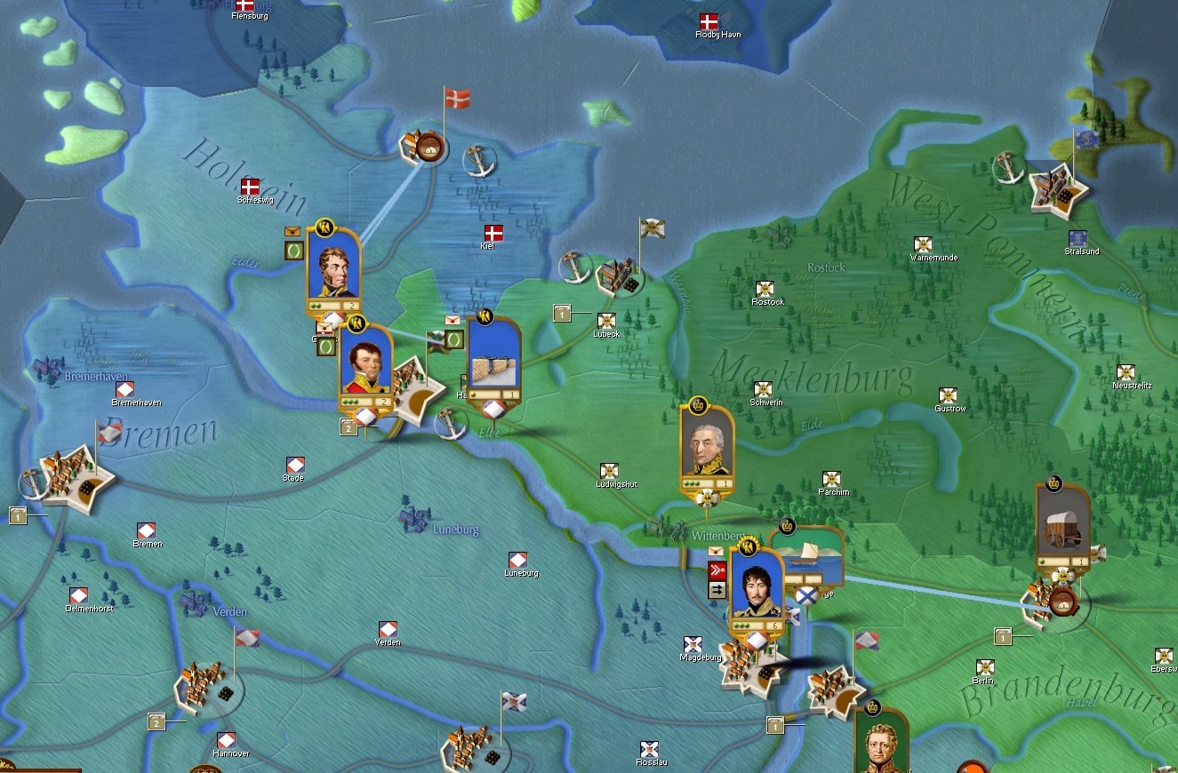 El cuerpo de Vandamme se dirige hacia Hamburgo. El grupo principal del ejército del Elba ha comenzado su avance, deberá tomar Magdeburgo y cruzar el Elba hacia Berlín :neener: