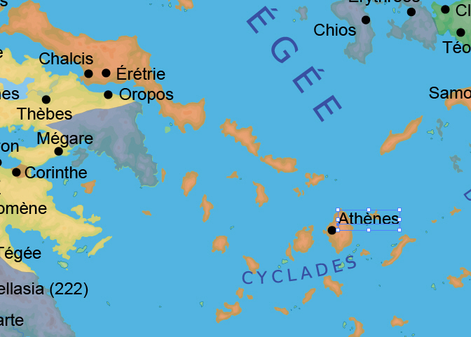 In the wikipedia I got a vectorial aegean historic map. Everything is selectable and you can change it. This is just an example, as NCP map is more complex, but I can select Athens name and city and move them to an island