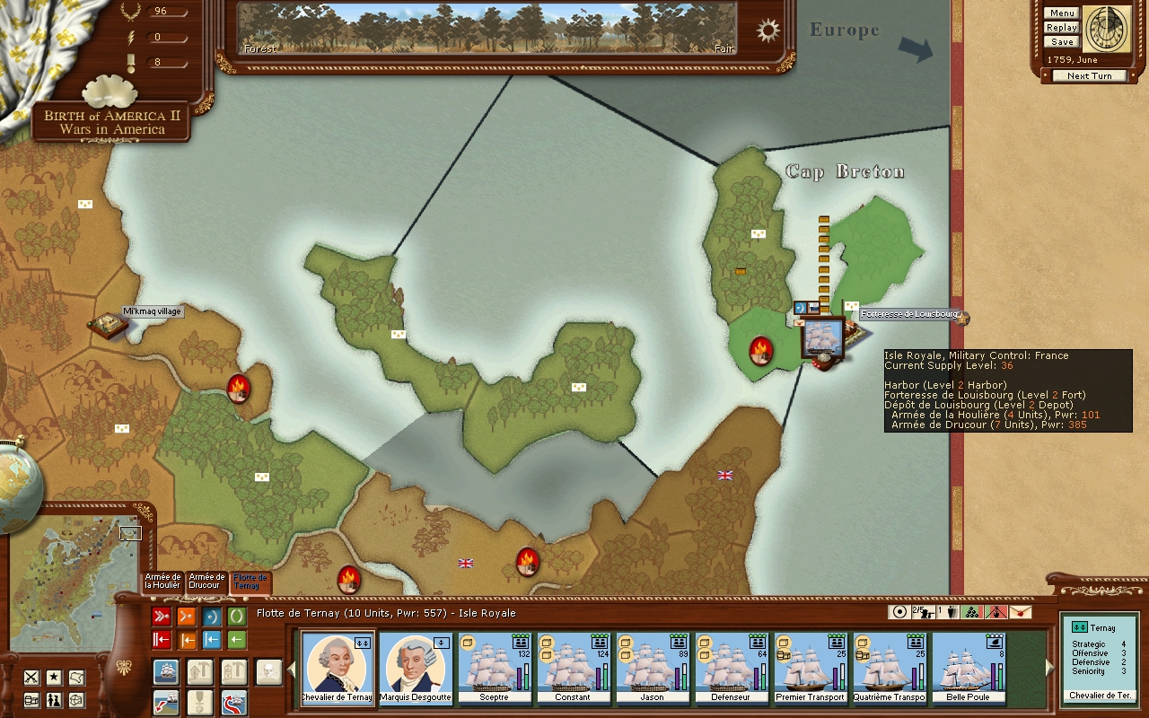 Louisbourg now have level 2 harbour,level 2 fort and level 2 depot.(is not a city) Generating 36 supply level. It is one of the big supply production regions.