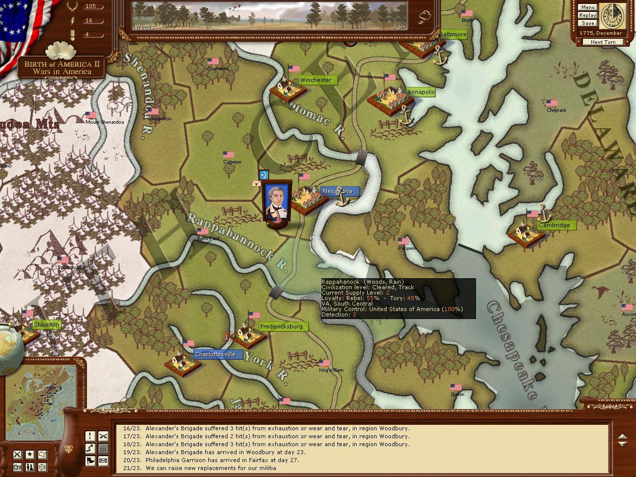 The Rappahannock region shows a road running through it but is listed as Track. All the other road regions along that route are listed as major roads. This causes a bit of problems moving from north to south because of the river. It makes that bridge irrelevant as units always move through the region to the northwest instead.