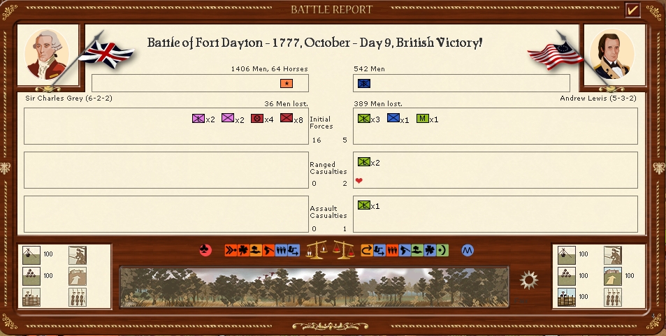 Prescotts brigade joins forces with Rall's then attacks Ft Stanwix forcing the rebels out into the wilderness this has been a long wait for this victory and will free up forces to recapture Ticonderoga.
