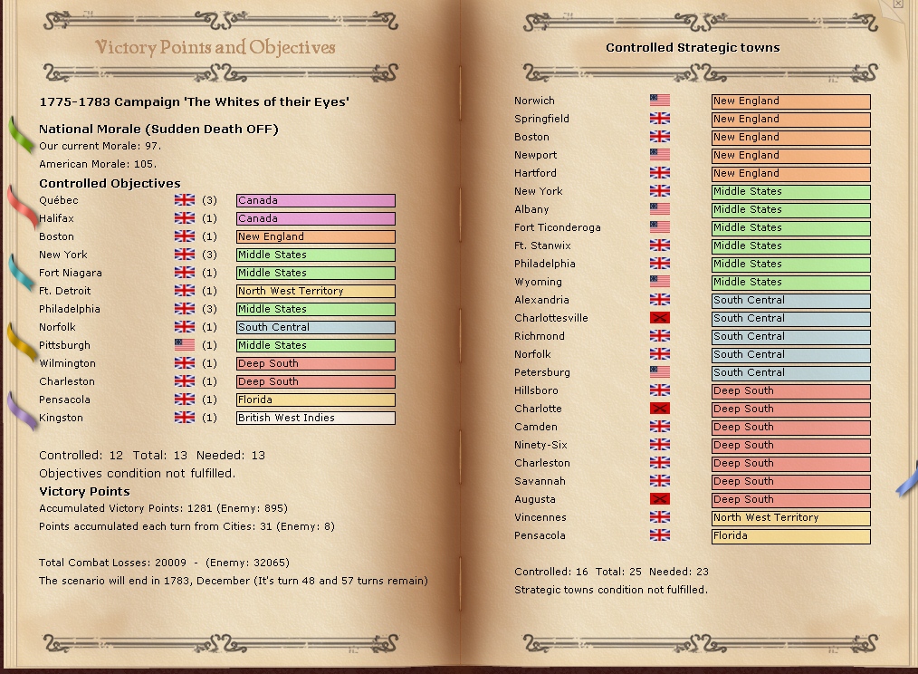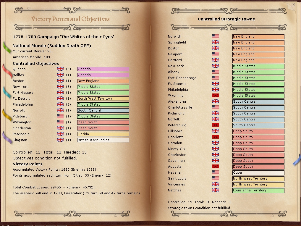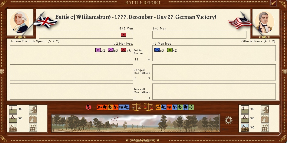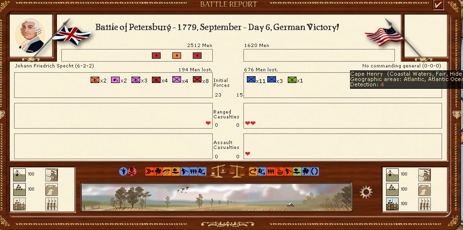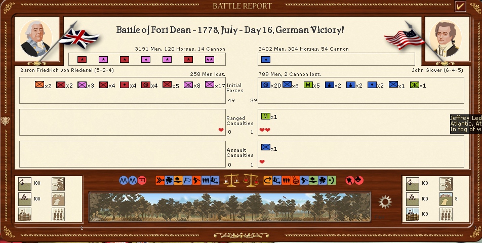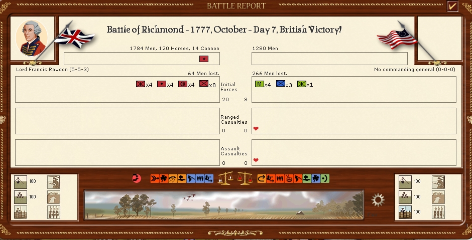The armies in New England are resting for the moment in the hope that i can resume operations soon however a lot of the battalions are well below strengh.
