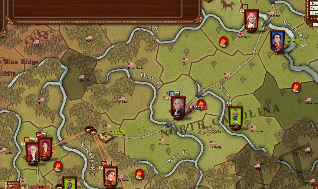 Only in the deep south does any action take place as Cornwallis and Prevost march north to capture Hillsborro.