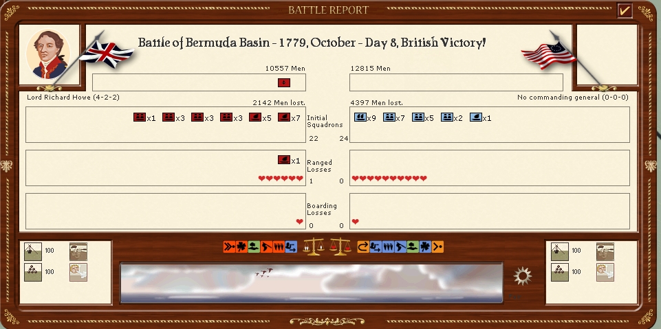 Admiral Howe sails from Charleston to engage a French invasion fleet at cape fear,Unfortunatly for me the French disembark there army before my fleet arrives and attacks Wilmington destroying the garrison and capturing the town.