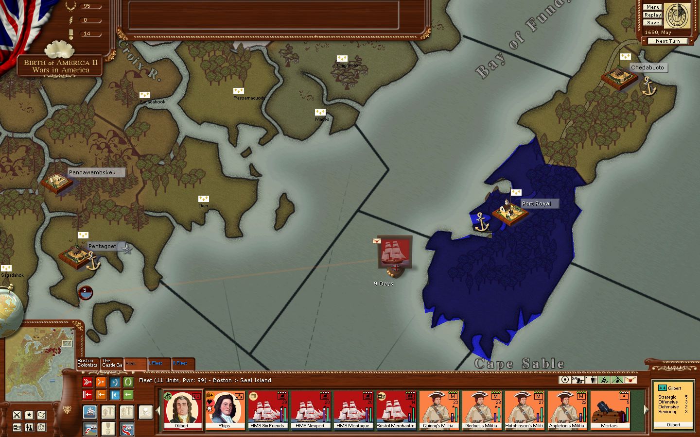 To the east Pentagouet surrenders to Wally's troops but his overconfidence left the recently re-captured Pemaquid lightly defended.