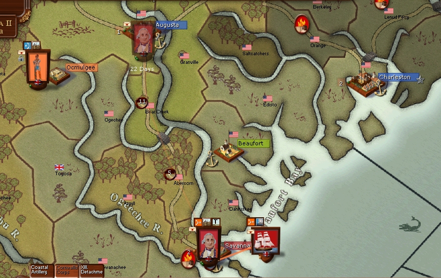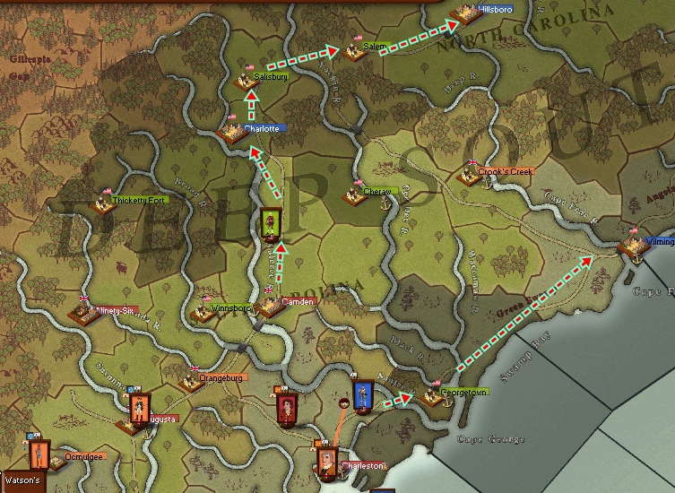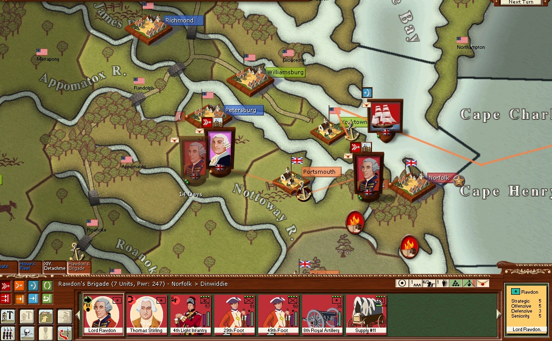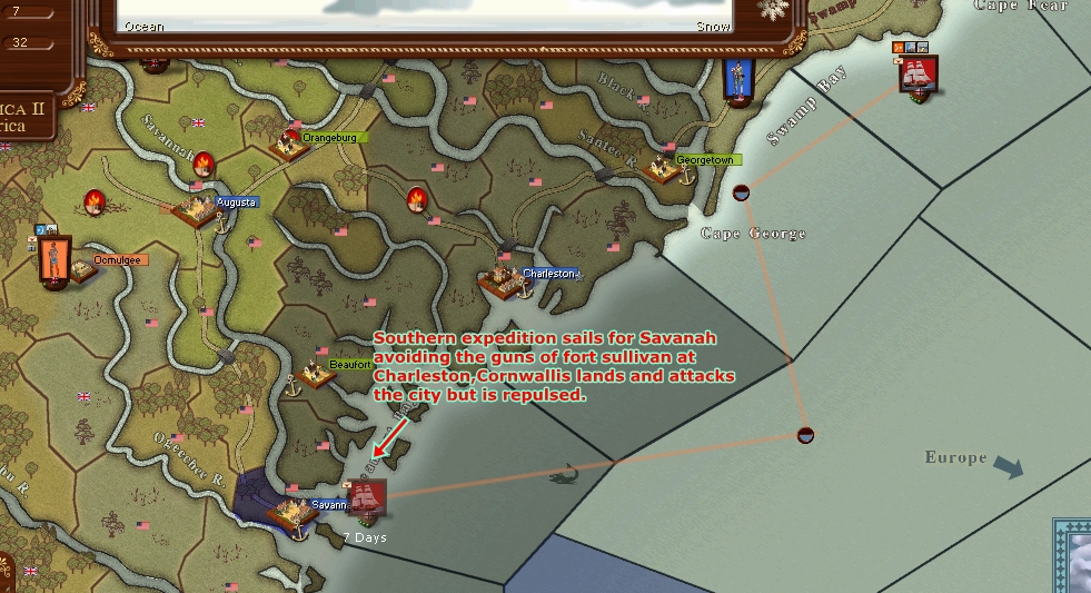 The Caribbean sqn has sailed for Norfolk with the 14th Foot on board but came under the guns of Charleston and took heavy damage the 14th was destroyed.