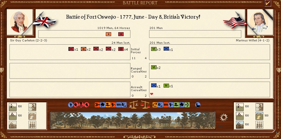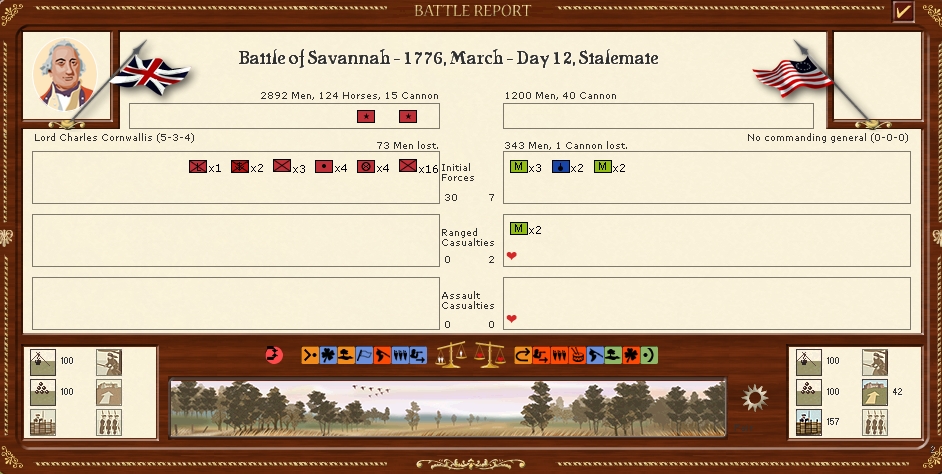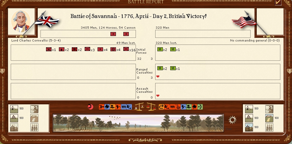 The Loyalist militia captured Orangeburg but the Americans disengaged and moved off to Augusta,The loyalists now face a 42day march back to ninety six as there is no supply in Orangeburg.