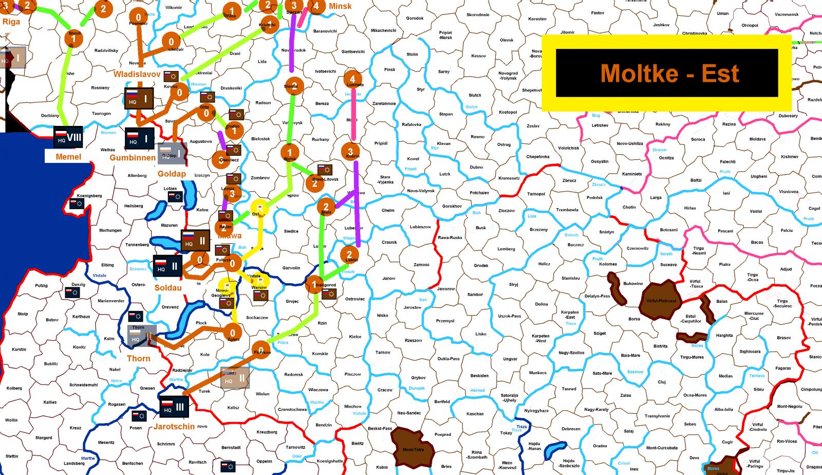 So, Germany cannot afford to just push forward, it must resist the Russians, stop the steamroller, and then push forward. What it does now, however, is to apply the Moltke Plan as if Russia had the original Grand-Duke Plan, which I would find totally fine in that particular situation.