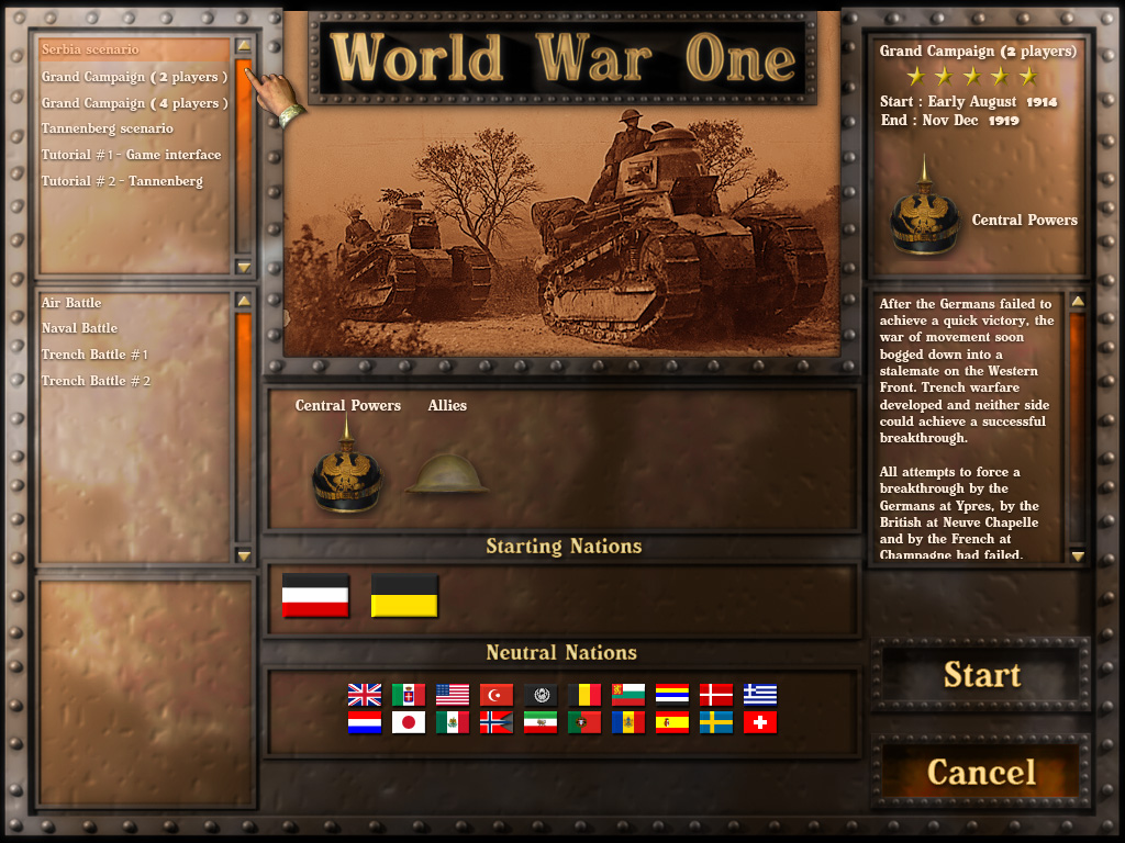 C’est un grand jeu stratégique où l’ensemble des fronts européens de la Grande Guerre sont très détaillés. Les autres fronts sont également présents sous formes d’offmap boxes (par exemple les colonies en Afrique).