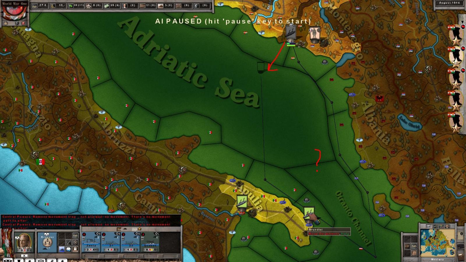 Franciscus wrote:- I want to move my Souchon-led Austrian fleet from Cataro to Adriatic sea. The game instead of plotting a direct route plots a roundabout route through the coast of Albania, Greece, Italy and finally into Adriatic (first pic) Why ?? :confused: