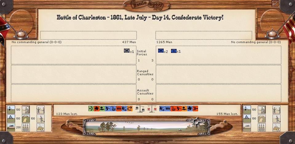 USA captures Charleston, multiple engagements at ft smith results in draw.