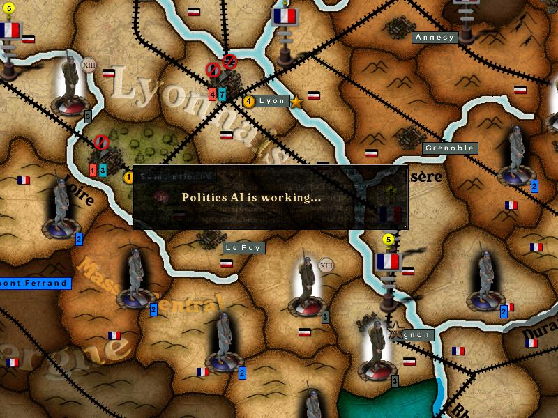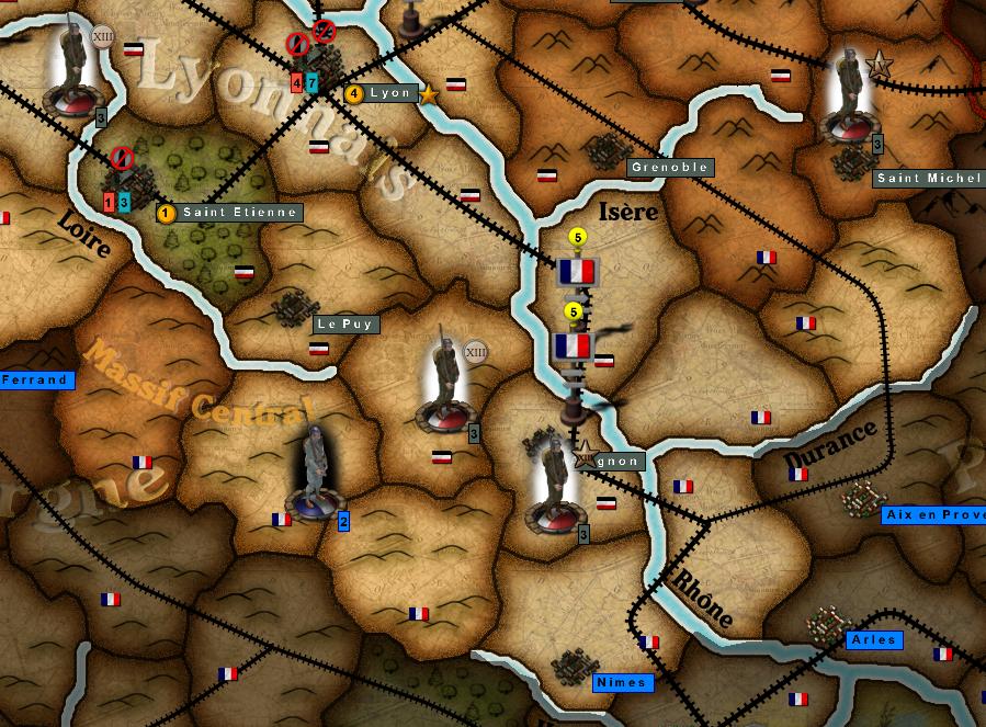 Another odd thing is a number of french 'ghost' detachments that show up and eventually disappear again. An example is in the screenshot with the 6 french detachments near Lyon that where not there after the redeployment phase, but there are more than just those spread over the map... :bonk: