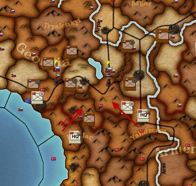 No action by either side, but Turks do send TU IV Army from Damascus to Jerusalem, in case the Brits get frisky. See image.