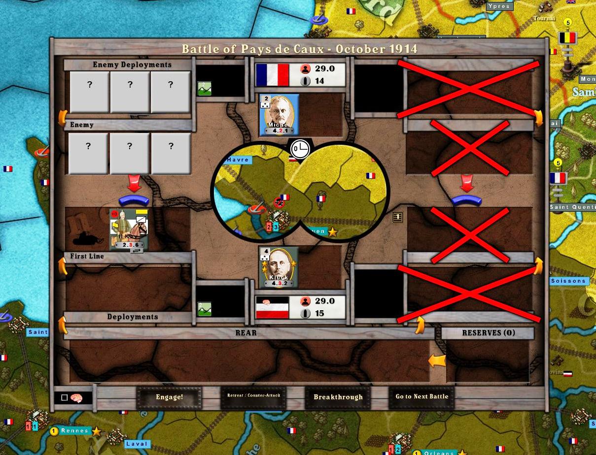 This has resulted in cutting off 2 Frecnh Armies in the Rhineland. Minimal force will be used to counter this threat until the great push on Paris is completed-or ended.