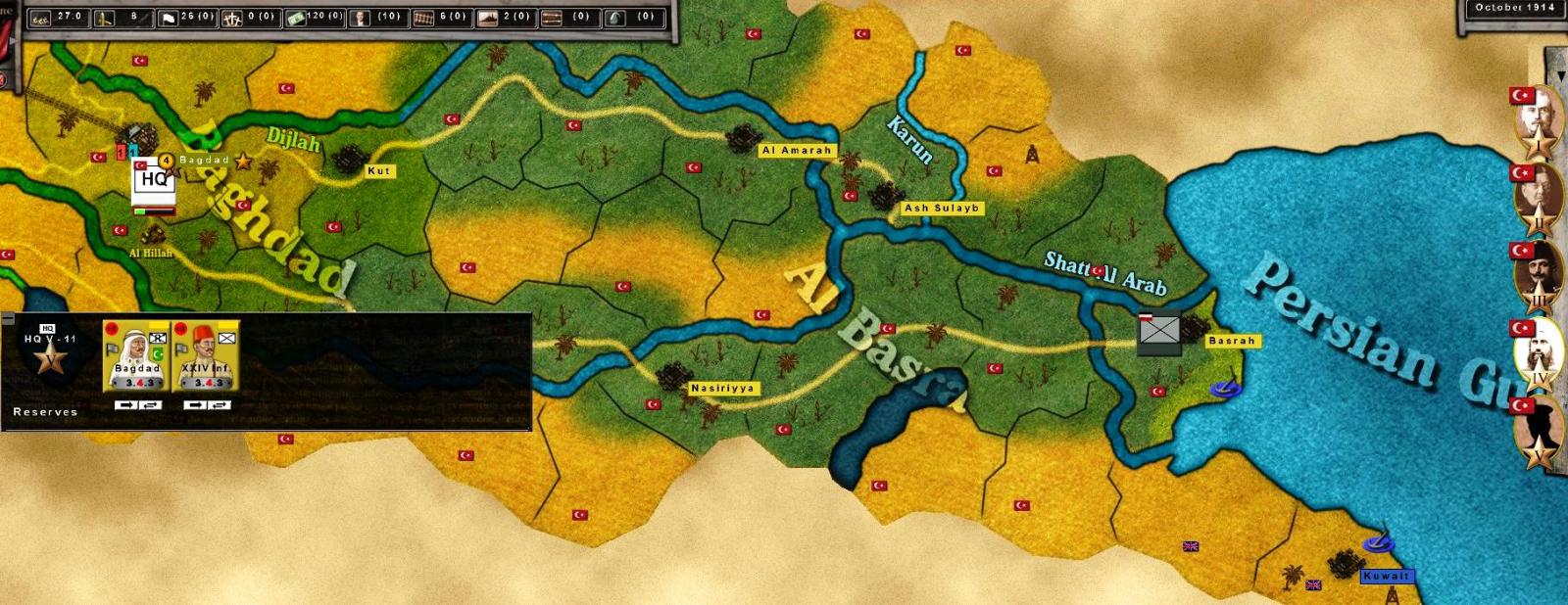 The British have arrived in force in the Sinai. The 4th Army will set up a defensive line in Gaza reaching to the Dead Sea. Aqaba is defended with a single Inf corp which should be adequate.